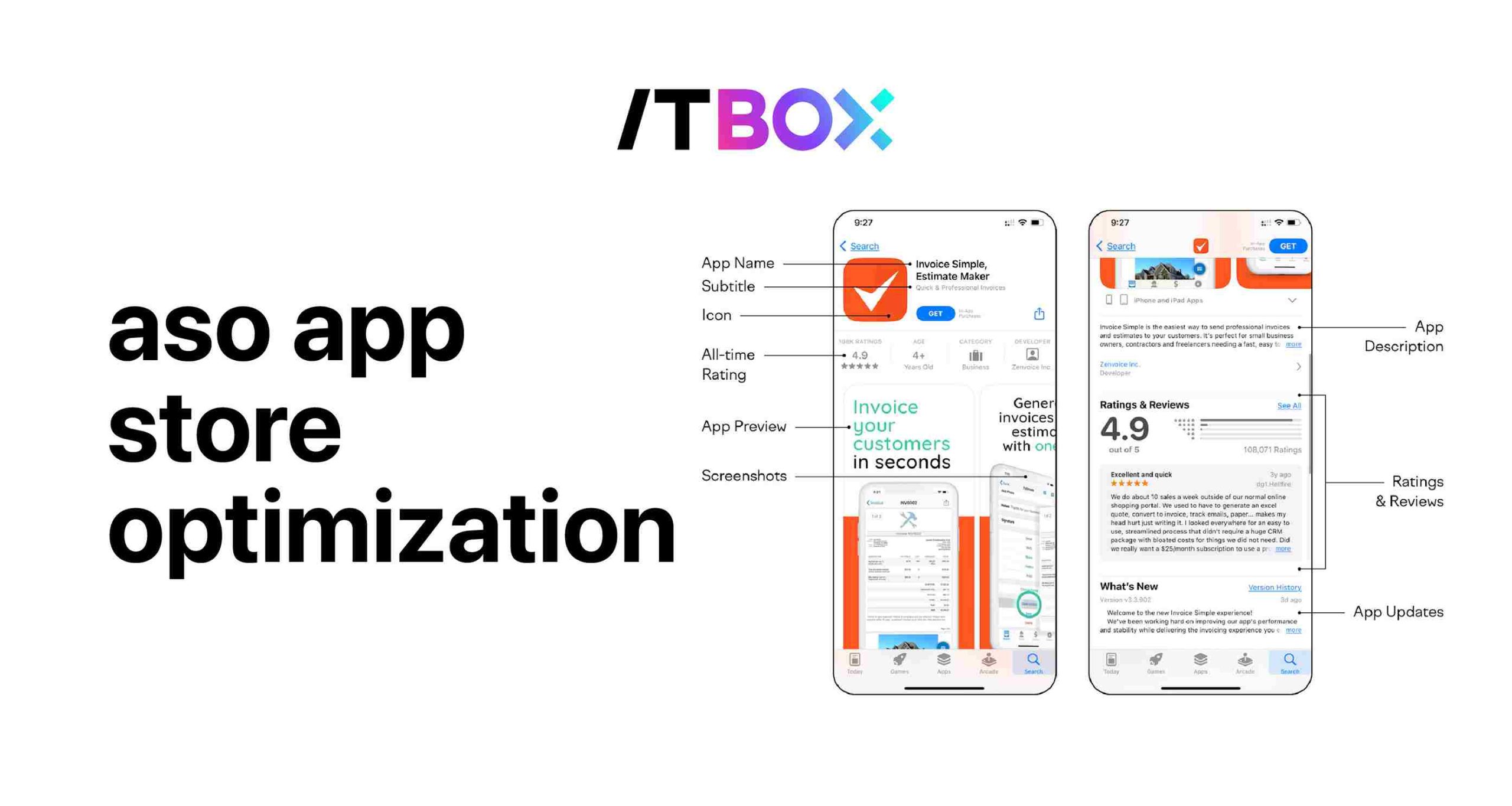 App Store Optimization atau ASO adalah proses yang dilakukan untuk meningkatkan visibilitas aplikasi dan konversi halaman produk di berbagai toko aplikasi, seperti App Store dan Google Play Store.